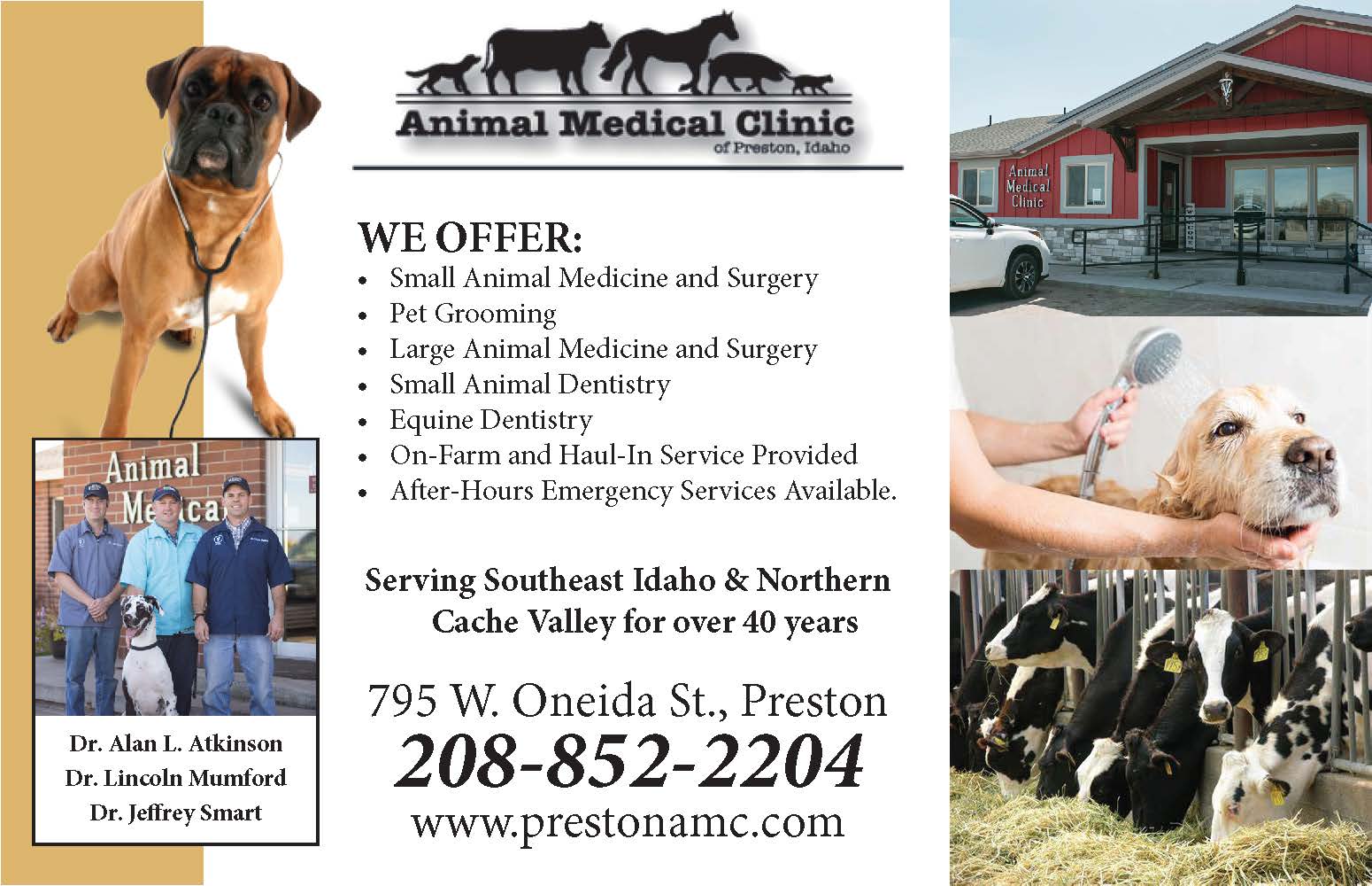 Small Animal Medicine and Surgery, Pet Grooming, Large Animal Medicine, Surgery, Small Animal Dentistry, Equine Dentistry, On-Farm and Haul-In,